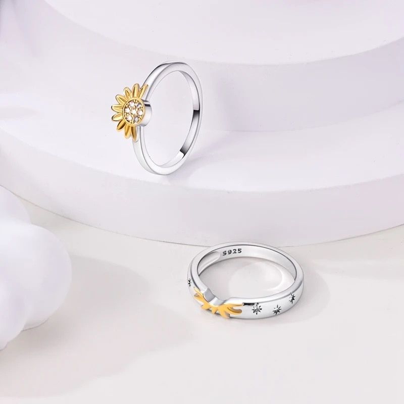 ICes deux anneaux formant un soleil créent un ensemble éblouissant, symbolisant l'énergie et la chaleur du soleil. Lorsqu'ils sont portés ensemble, ils fusionnent pour créer un motif céleste qui brille de mille feux. Cet ensemble est bien plus qu'un simple accessoire ; il incarne la force et la vitalité du soleil, apportant une touche de lumière à chaque mouvement. Que ce soit comme un cadeau radieux ou pour compléter votre propre style, ces anneaux soleil sont l'expression parfaite de la beauté naturelle et de l'éclat.