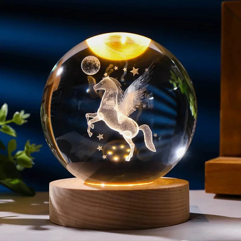 Boule de Cristal Cheval ailé avec LED : Une fenêtre sur l'Univers étoilé !