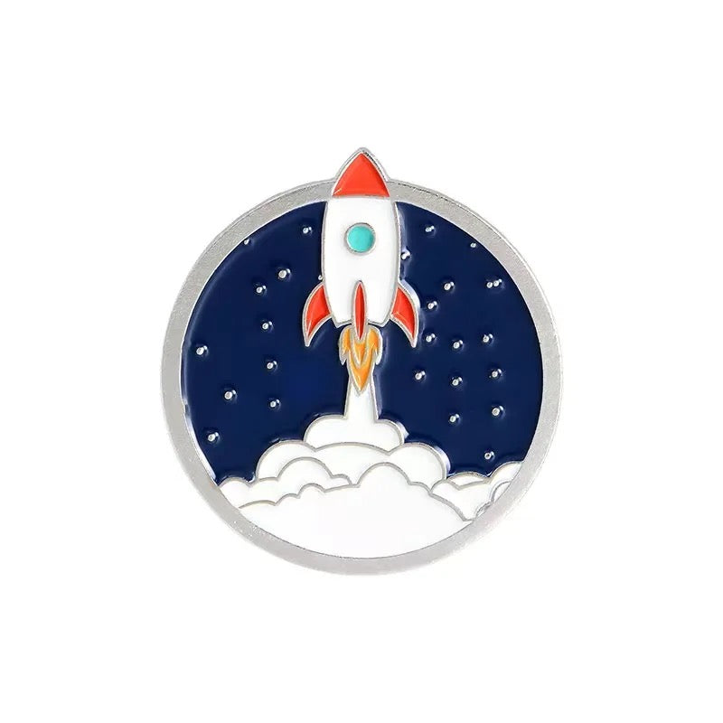 À travers cet accessoire, c'est l'appel des horizons infinis qui résonne. La fusée en plein décollage rappelle que chaque envol représente un pas vers l'inexploré, une métaphore visuelle de la conquête spatiale. Arborez ce pin's et laissez-vous emporter par la promesse d'aventures interstellaires.