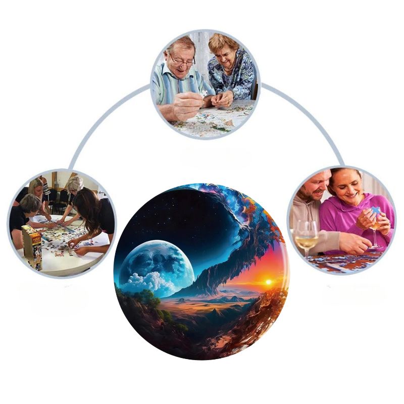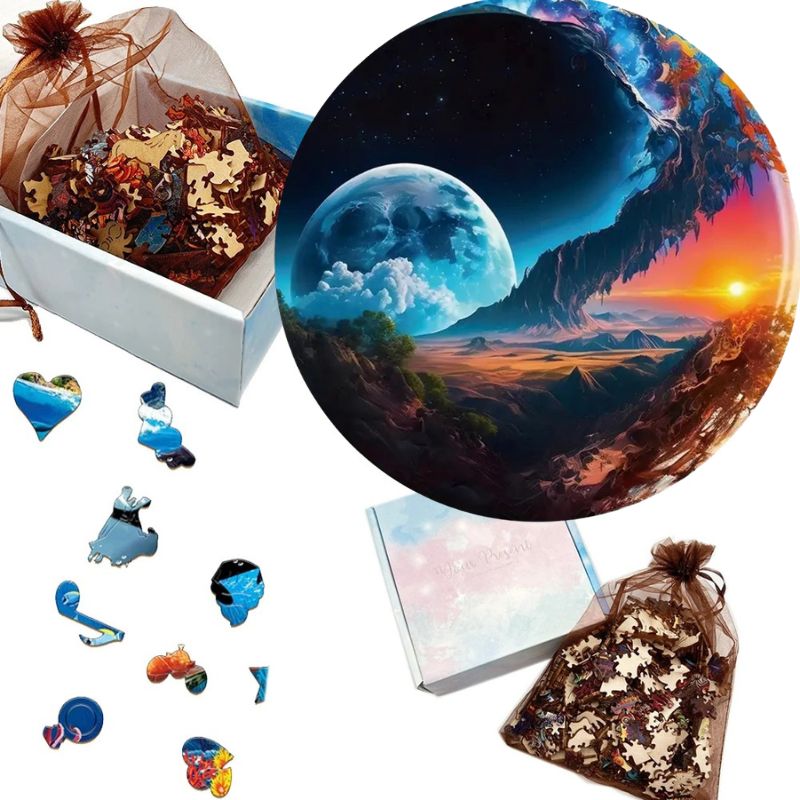 Laissez-vous transporter par ce puzzle rond en bois au design poétique. Entre la douceur d’un clair de lune et la chaleur inspirante d’un lever de soleil, chaque pièce invite à la contemplation et à la détente. Une œuvre parfaite pour sublimer votre espace une fois assemblée.